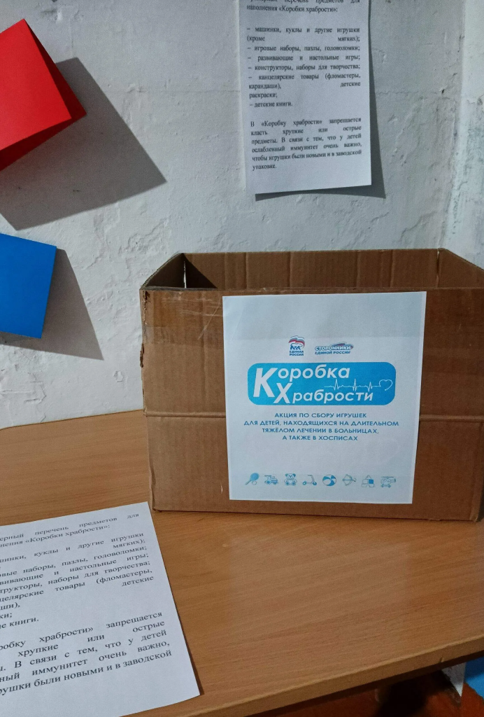 С 10 ноября по 2 декабря 2025 года для поддержки детей, находящихся на длительном лечении в хосписах, онкологических центрах и иных медицинских учреждениях, Партией «Единая Россия» по всей стране уже в тринадцатый раз реализуется ежегодная благотворительная акция «Коробка храбрости». В рамках акции осуществляется сбор детских товаров в заводской упаковке. Примерный перечень предметов для наполнения «Коробки храбрости»: — машинки, куклы и другие игрушки (кроме мягких); — игровые наборы, пазлы, головоломки; — развивающие и настольные игры; — конструкторы и наборы для творчества; — канцелярские товары (фломастеры, карандаши, детские раскраски); — детские книги. В «Коробку храбрости» запрещается класть хрупкие или острые предметы. В связи с тем, что у детей ослабленный иммунитет, очень важно, чтобы игрушки были новыми и в заводской упаковке. Приглашаем всех неравнодушных жителей принять участие в акции. «Коробка добра» размещена в Панкрушихинской районной библиотеке